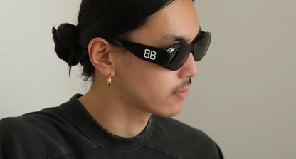 Balenciaga Bb0396Sk-001: "Gafas de sol rectangulares y modernas con marco negro y havana brillante y lentes grises. Su diseño es minimalista y estilizado, perfecto para quienes buscan un toque contemporáneo y elegante en su look.